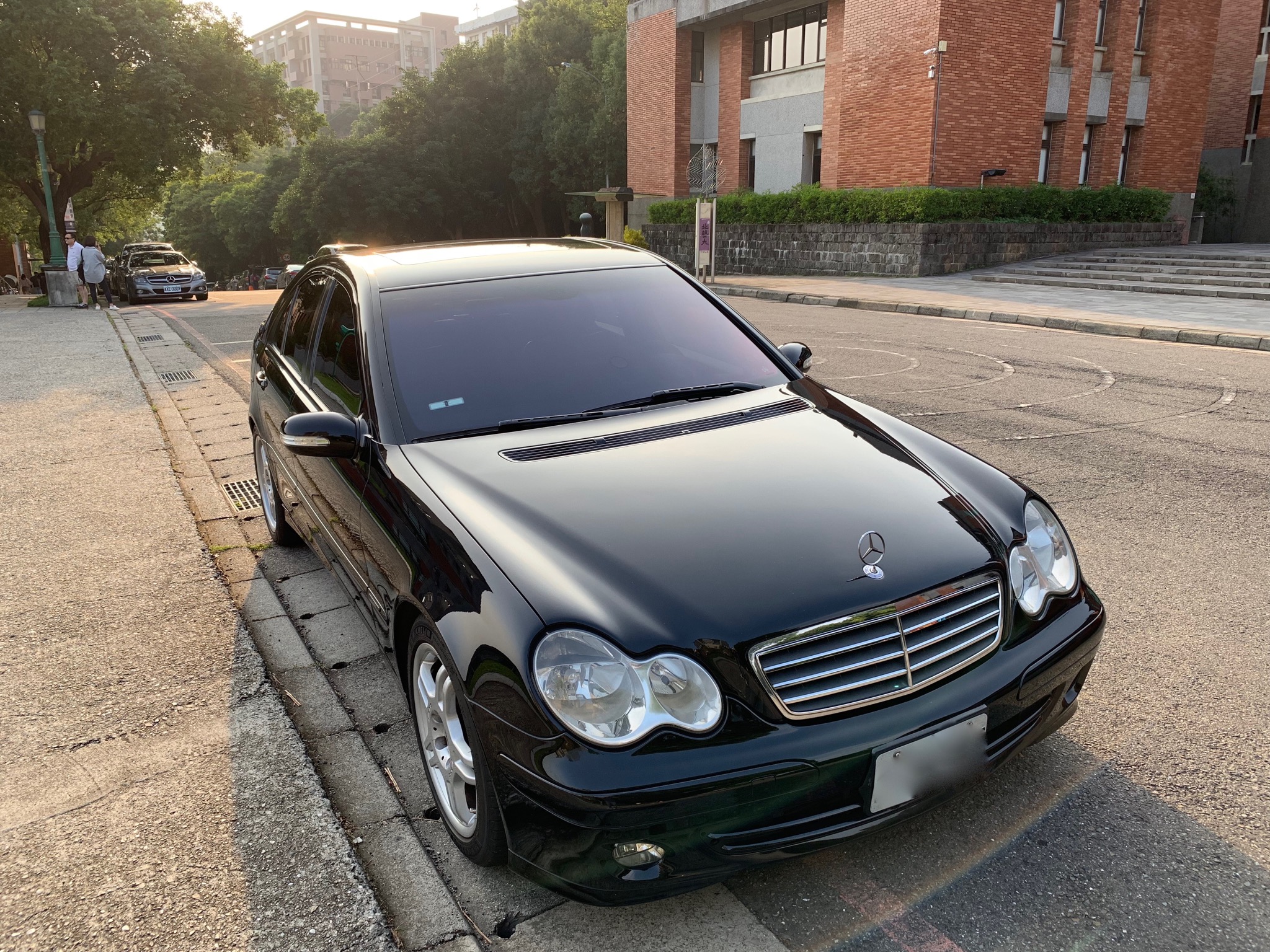 全車黑內裝、天窗、配備駕駛座記憶電動座椅、後倒車雷達、電動摺後視鏡、恆溫空調、六片式CD音響、17寸AMG鋁圈、六顆安全氣囊、ESP循跡防滑穩定系統、高級隔熱紙。跑車式樣三幅式方向盤,原地轉向輕鬆自在、高速時則穩定平衡。(前期許多01~03 的203沒有,方向盤會相對重手)。